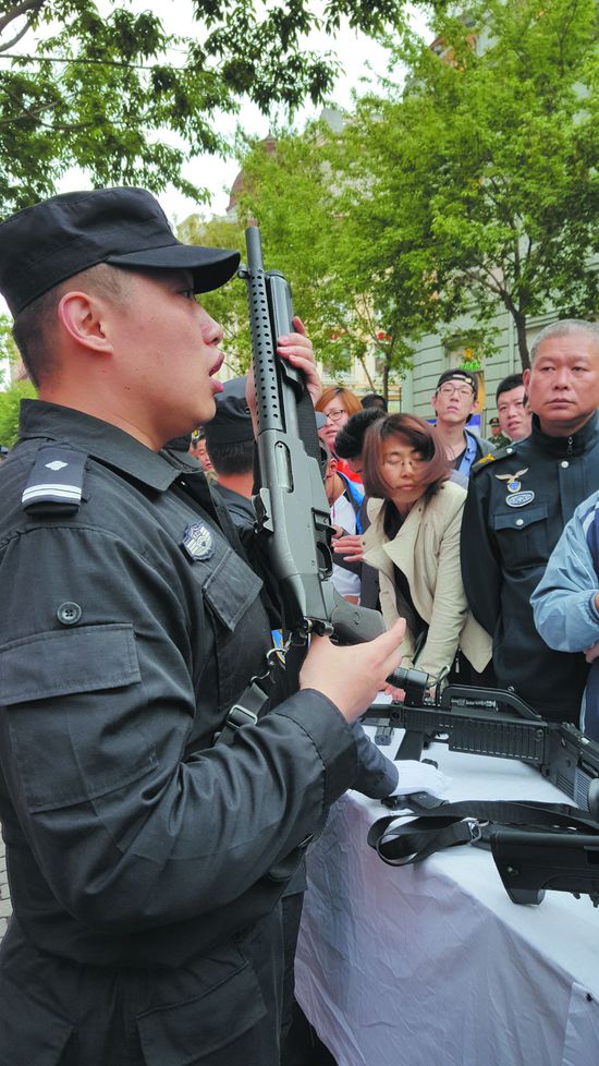 生活报5月17日讯 16日下午,哈市反恐办在中央大街举行《反恐怖主义法》宣传年启动仪式,开展为期半年的宣传活动。活动中,哈市警方向市民发放了宣传资料等,还展示了40余种反恐装备。