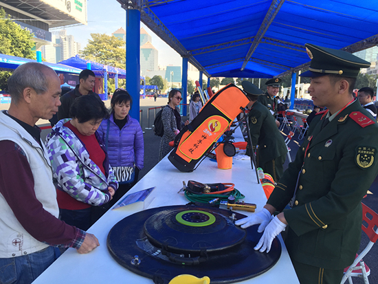 • 粤警“飓风2016”专项行动成果展上30日在广州开幕,警用装备展区受到市民热捧。