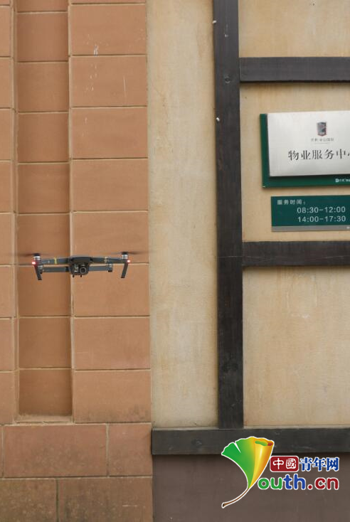 无人机正在社区巡逻。南轩 摄