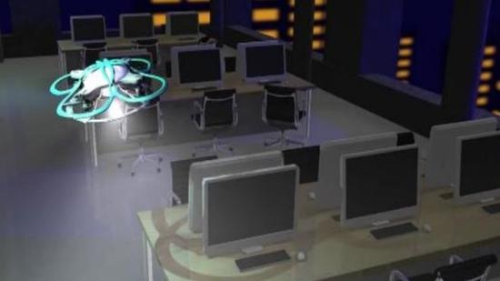 这架无人机会在员工下班后,按照预先设定的路线巡视办公室。
